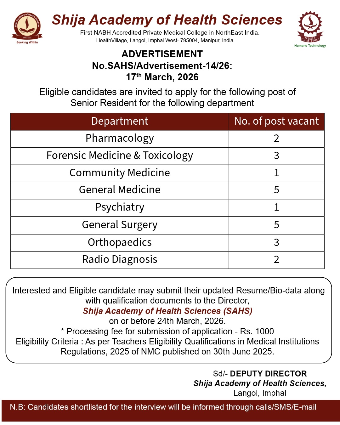 Shija Hospitals and Research Institute Pvt Ltd in association with Handicapped Development (HD) Foun
